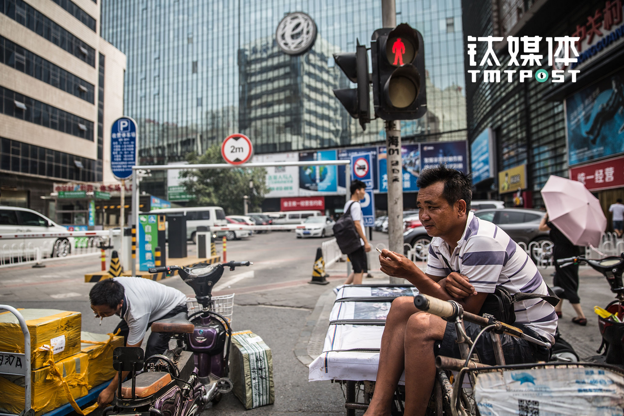 王师傅在中关村的街头拉货10年了,“这几个卖场附近有30多个板车拉货的,走了一大半了已经”。