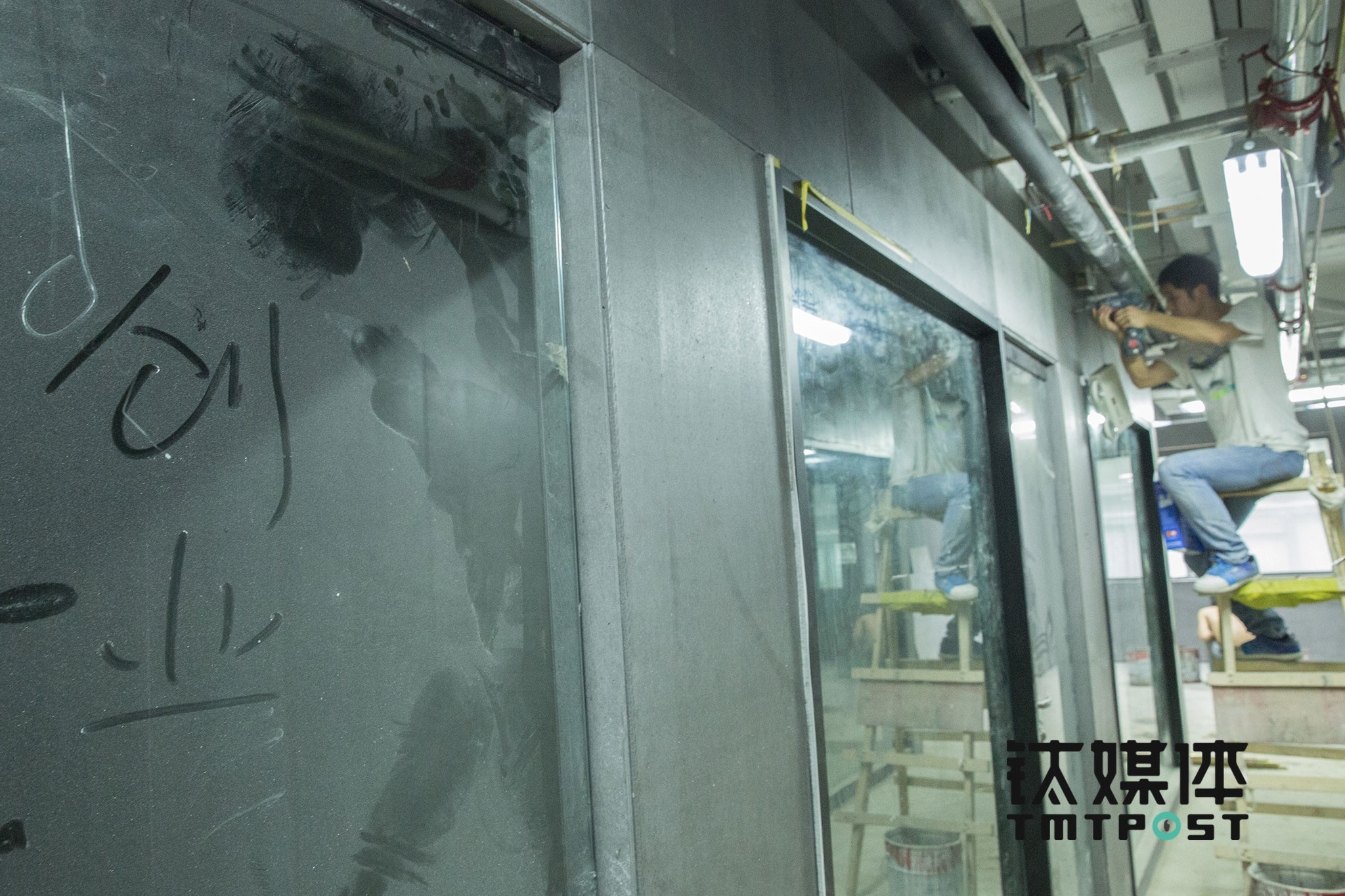 一家咖啡馆扩大范围,租下整栋楼进行装修改造,用于创业孵化。2016年7月25日,装修现场,有人在玻璃上写下“创业”两个字。