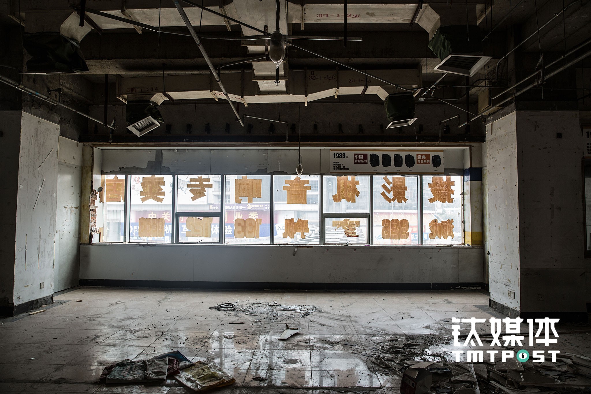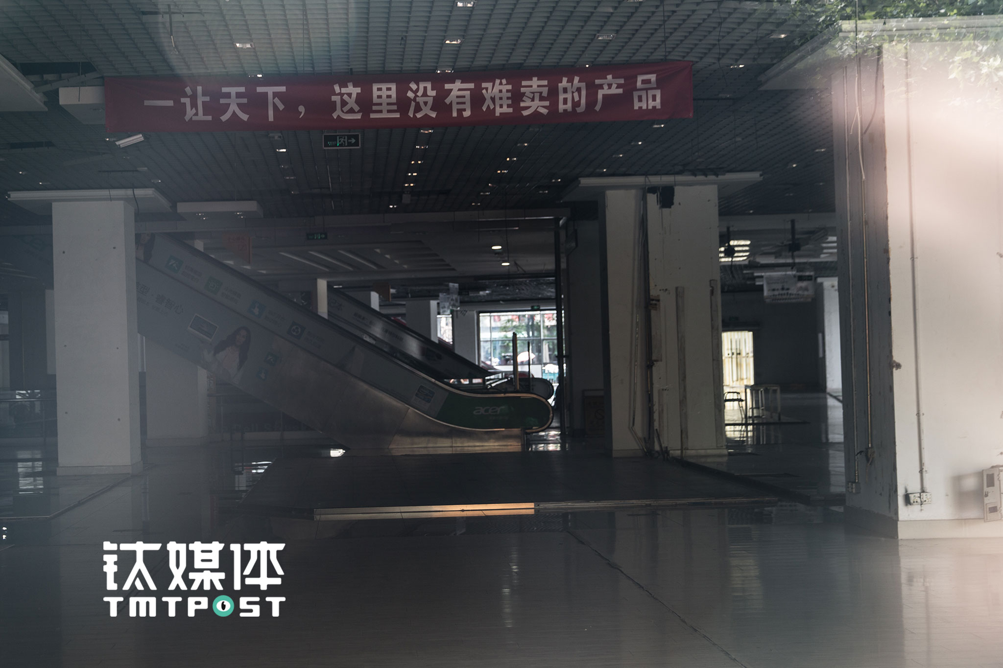 海龙附近另一个曾经火爆的电子产品卖场,同样进入了“改造升级”的时间,经营户搬离后,留下了“一让天下,这里没有难卖的产品”的标语。