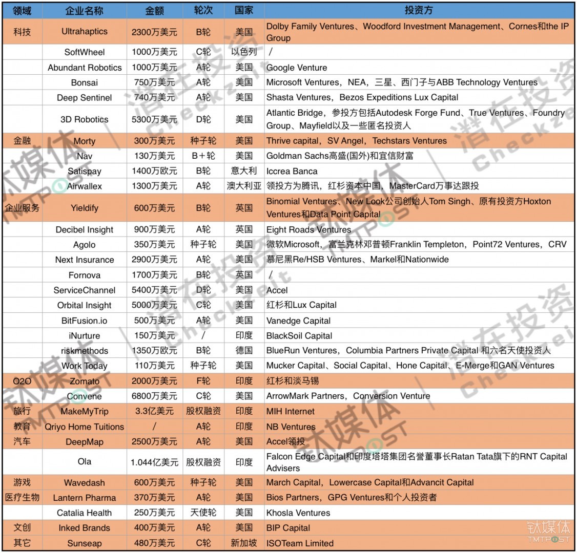 ✔️. 企业服务领域『特斯联科技』获得1亿元美元A轮融资较为瞩目,新车电商平台『行圆汽车』宣布完成3亿元天使轮融资值得注意。
