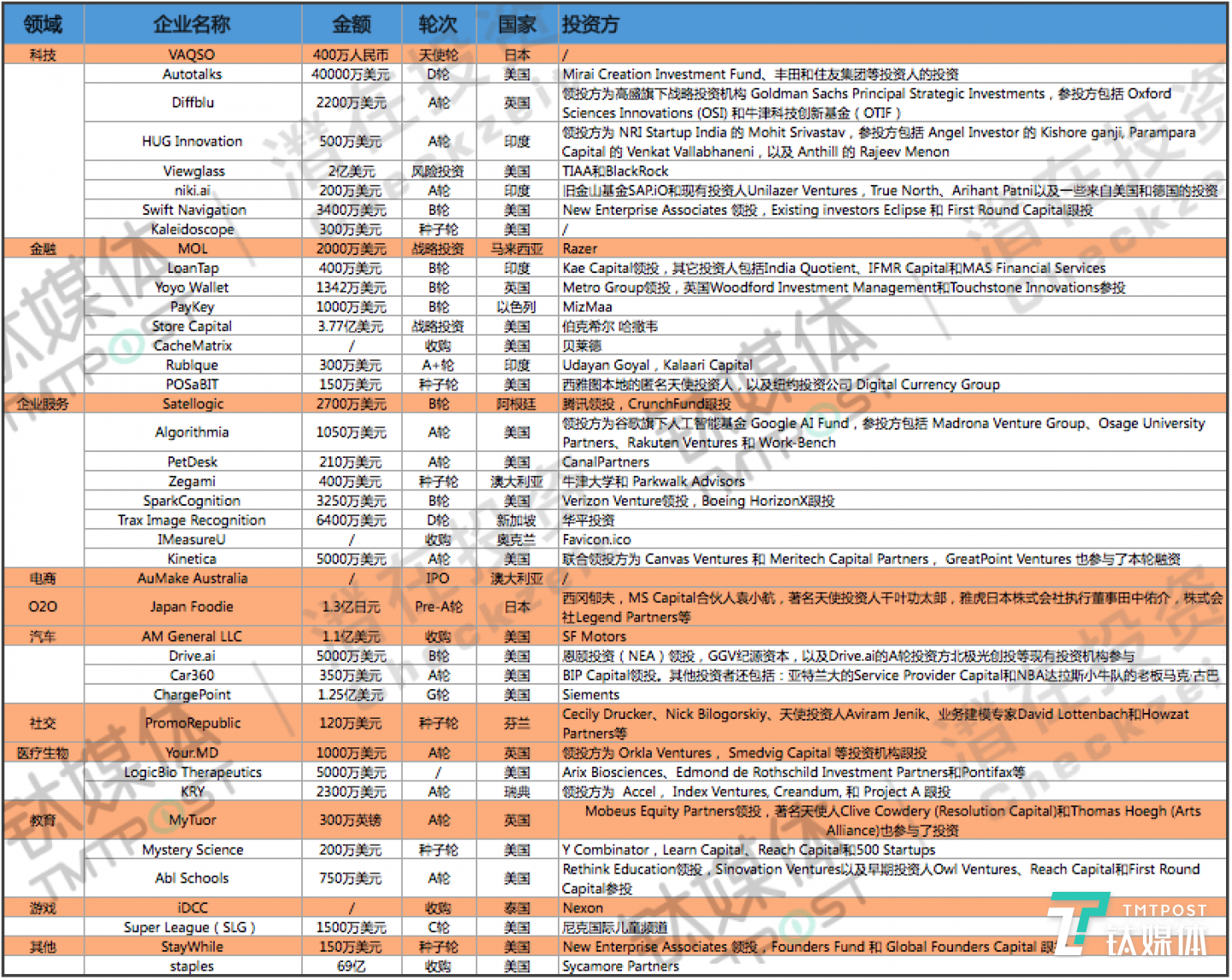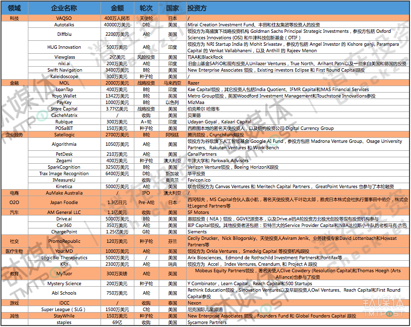✔️. 本周钛媒体Pro全球创投数据库TMTBase总计收录国外重大融资事件41起。