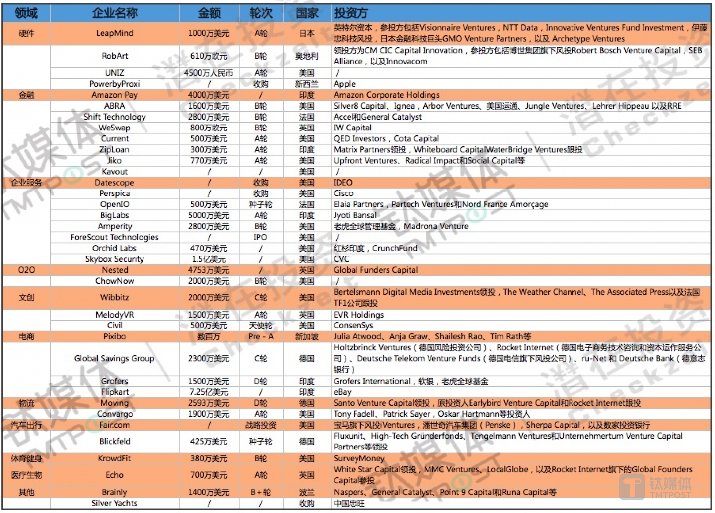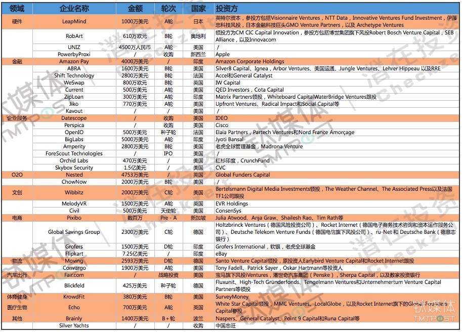 ✔️. 本周钛媒体Pro全球创投数据库TMTBase总计收录国外共37起投融资事件,电商领域投资活跃。