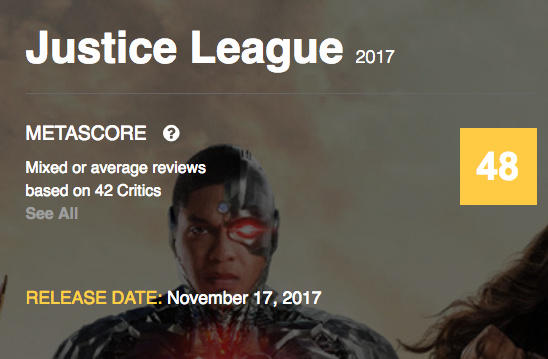 《正义联盟》遭遇口碑惨剧 来源:metacritic