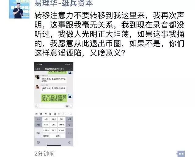 李笑来的录音曝光后,他的合伙人老猫开始满世界寻找幕后黑手,并公开把矛头指向了他们此前的合伙人、如今了得资本的易理华。易理华当然不肯承认这种指控,双方一度掀起了一场朋友圈辩论。