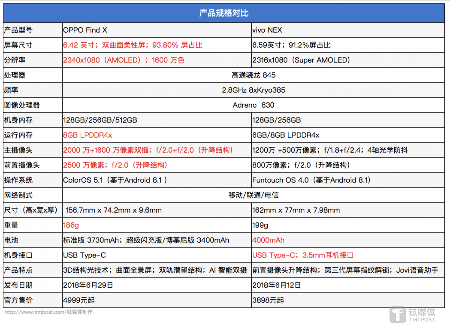 这次,钛媒体就为大家找来了NEX和Find X两款手机,分别从下面这7个维度进行对比: