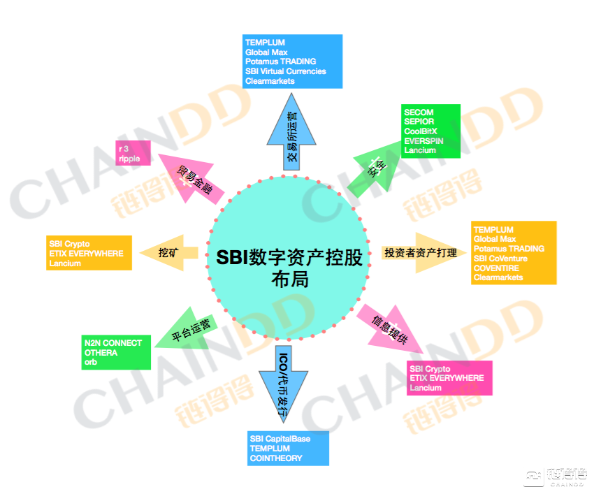 在ICO和代币发行方面也有布局,除了自有SBI CapitalBase以外,投资了美国T1R公司,股份高达20%;更早之前SBI还向纽约加密货币交易平台Templum投资了1000万美元,占股4%。
