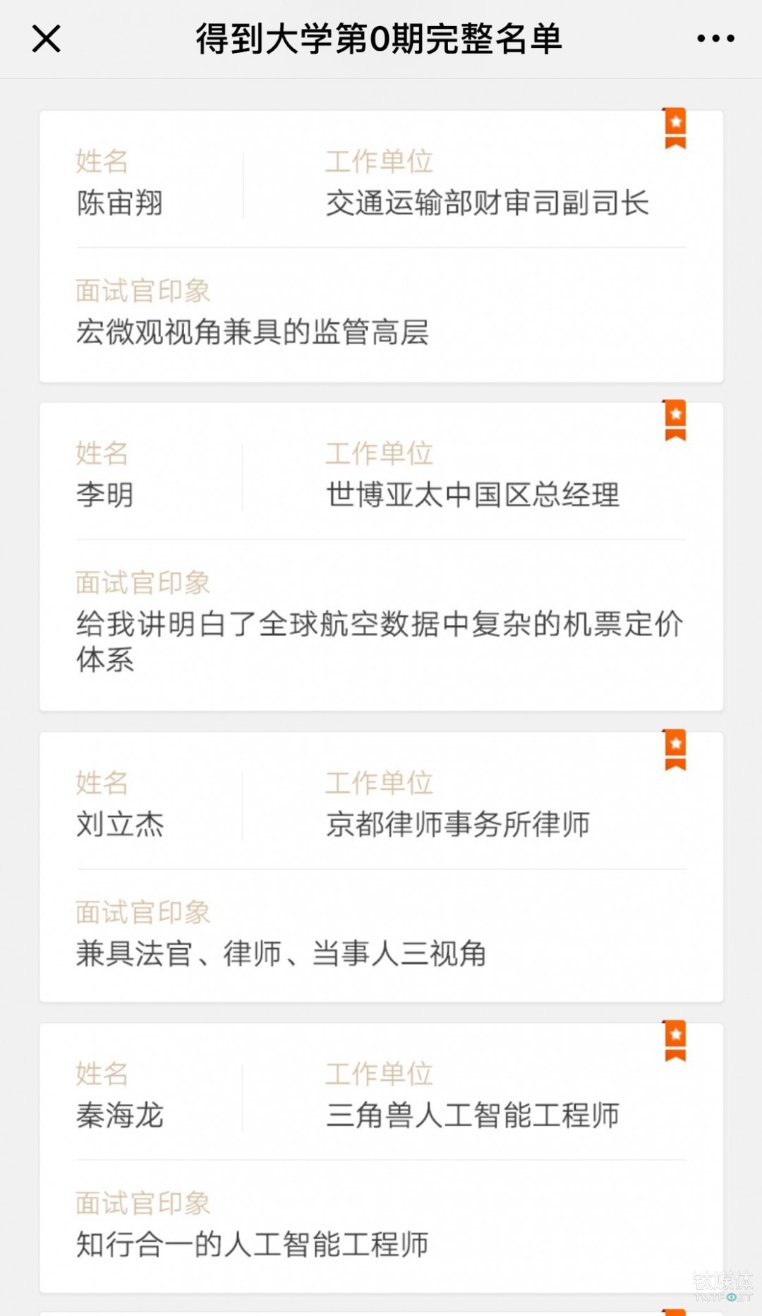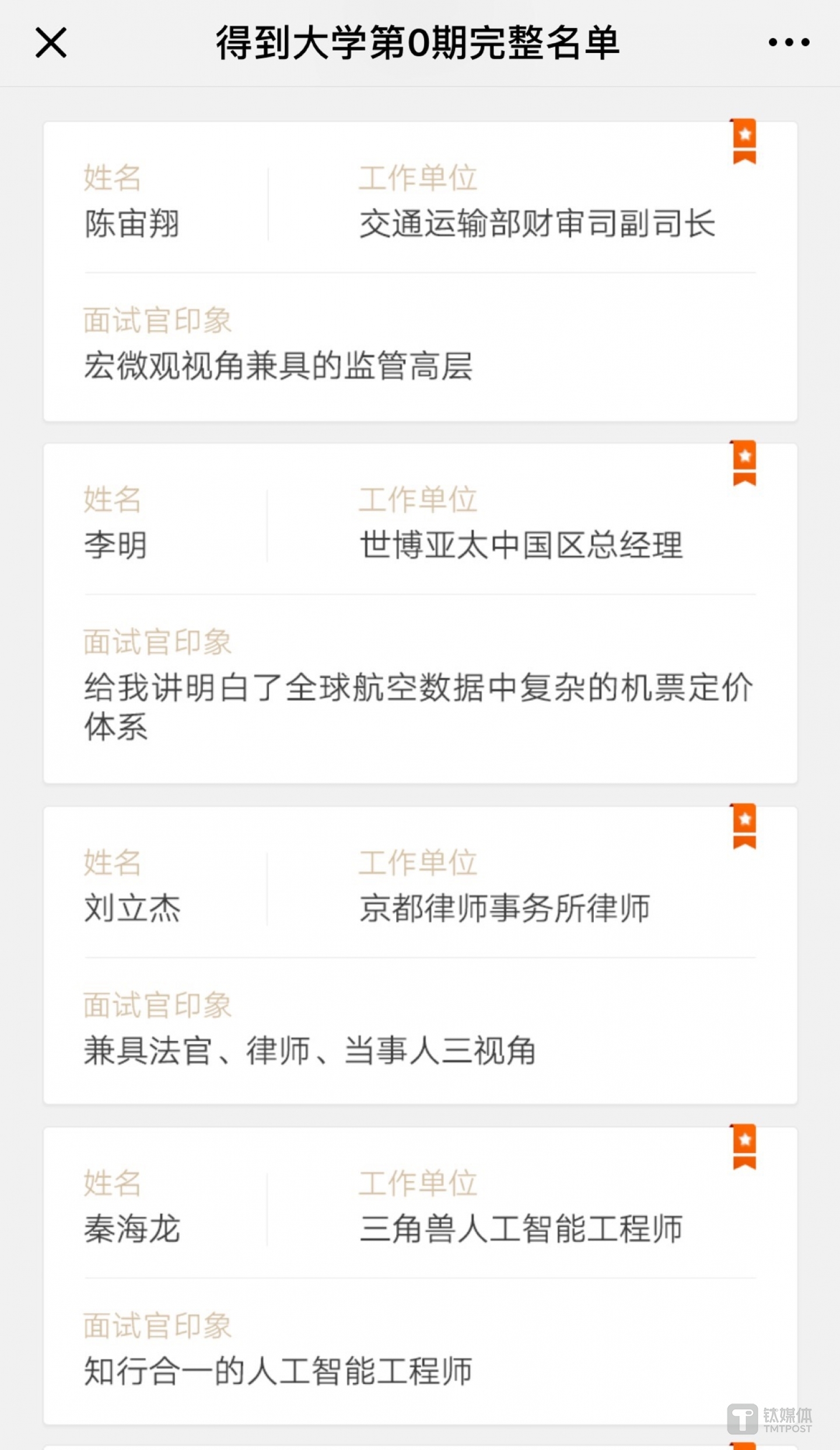 得到 CEO 脱不花在朋友圈表示,这第0批学员是“从5100份报名申请中”最终筛选而来。