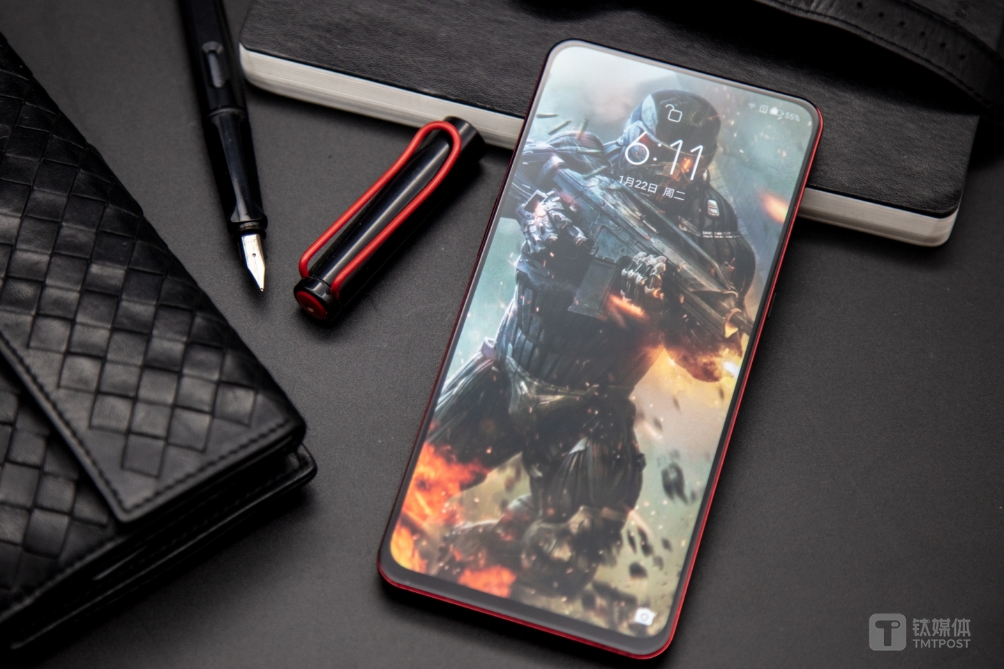 与普通版本不同的是,联想Z5 Pro GT在细节上加入了新的元素,整体机身借鉴跑车的配色风格,采用黑色为主色调,屏幕一周和滑盖背后加入红色元素。