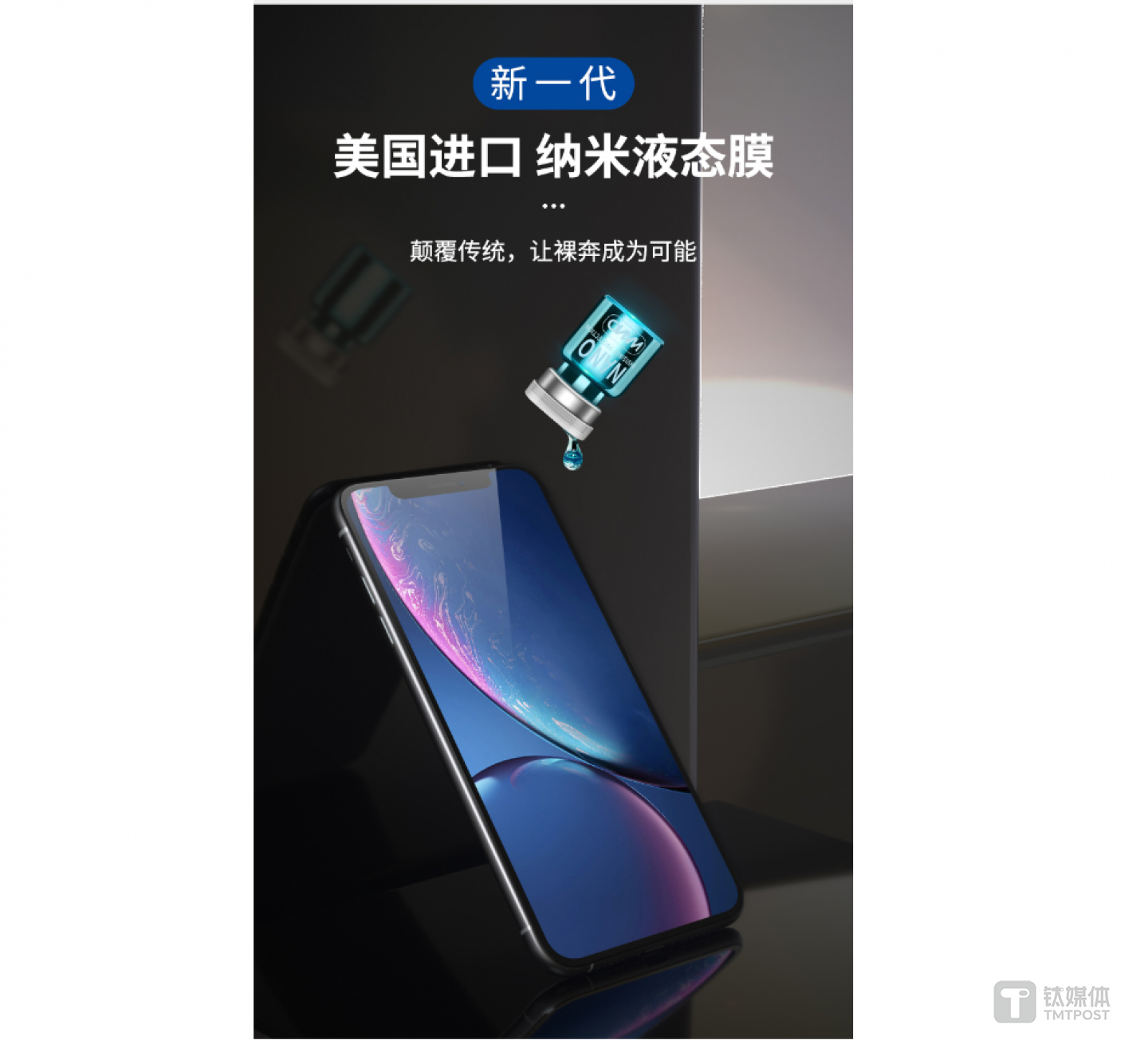 但随着手机设计的变化,传统的钢化膜似乎遇到了问题——屏幕越来越大的曲率。从之前的屏幕边缘的2.5D过渡处理,到今年大多数4000元以上旗舰产品都具备的曲面屏,对于钢化膜与屏幕贴合的要求也随之增高,即便加入热弯工艺,钢化膜依旧很难做到完美的适配。在这个时候,一种新的“膜”进入了大家的视野,同时也开始出现在抖音、快手的首页上,它就是“纳米液态膜”。
