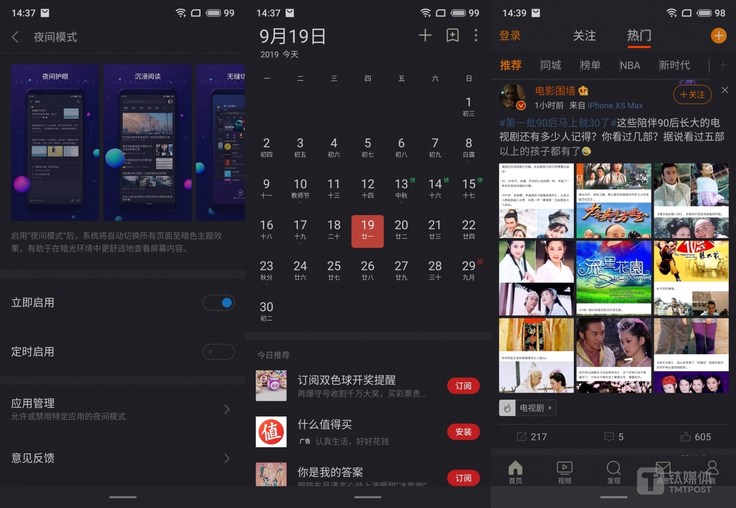 Flyme8系统除了在传统布局和留白上进行了改进,还升级了全新的夜景模式,通过魅族自研的色彩转换体系,可以完美适配第三方应用程序。