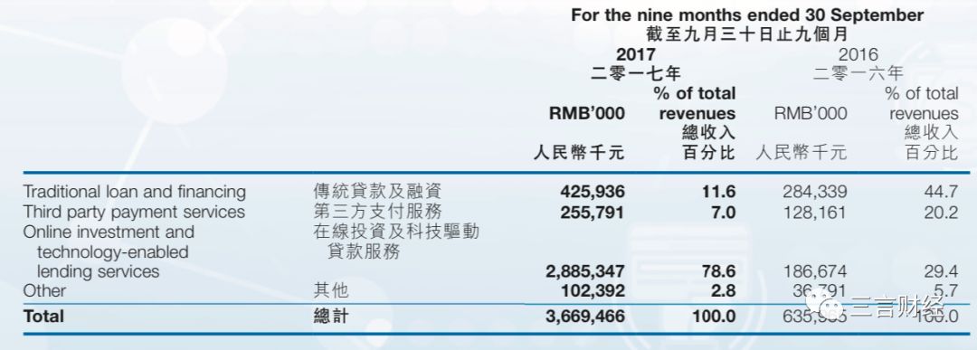 首先,中新控股2017年第三季度财报中,还未录入区块链业务。彼时公司核心业务主要是贷款业务、第三方支付以及财富管理,这三项分别占总收入的11.6%、7%和78.6%。其中财富管理业务收入占比将近80%。