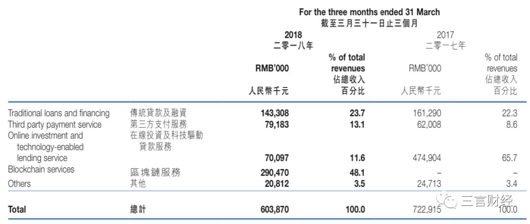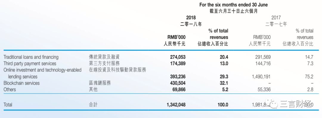 2018年前半年,区块链业务收入占中新控股总收入的32.1%,相比第一季度有所下降,但仍然是其主要收入来源。其中,财富管理业务收入占比29.3%、传统贷款业务收入占比20.4%、第三方支付业务占比13%。
