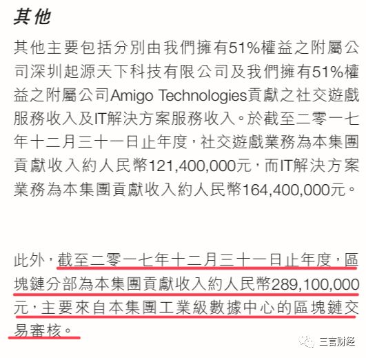 根据财报,2017年前四季度,区块链业务收入为2.89亿元人民币。从第三季度到第四季度短短三个月,区块链就为中新控股贡献近3亿元收入。此时,中新控股开始将区块链业务转为公司核心业务。