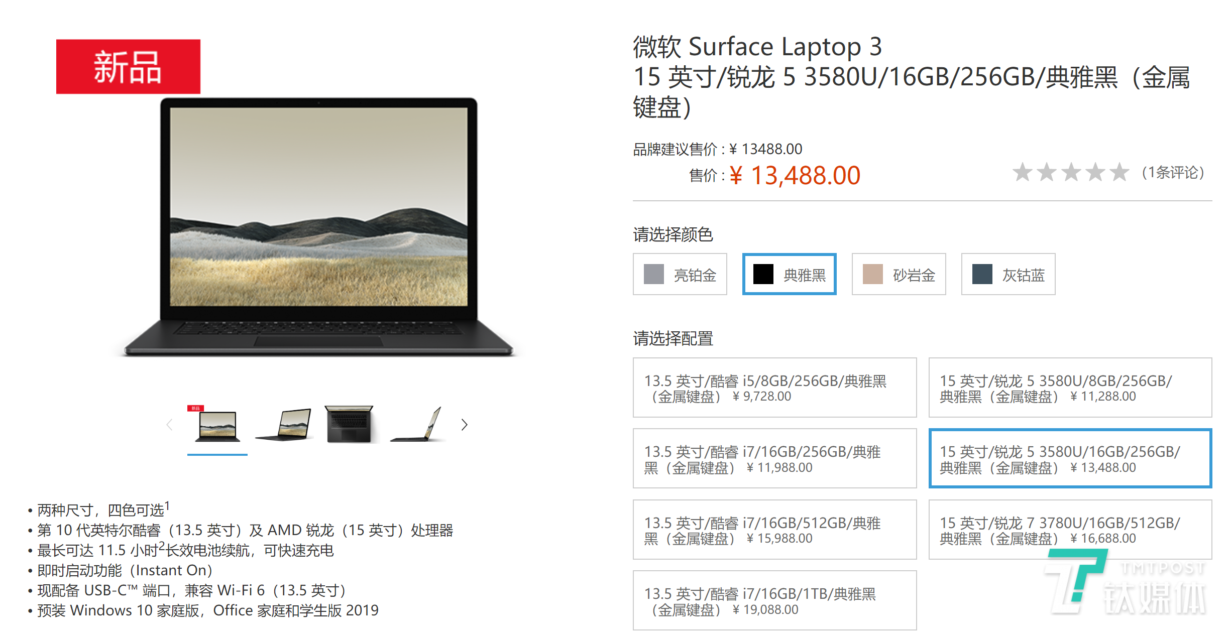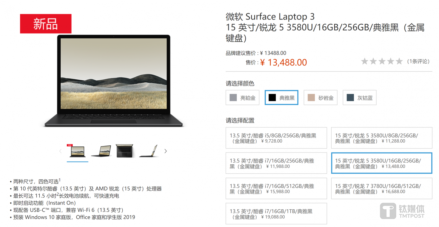 这下子就很复杂了,一方面笔者我想要的是大屏,但也同样割舍不下英特尔处理器,目前商城里面对普通消费者却没有这样的组合选项。笔者觉得,其实这两者反过来,把AMD处理器放在13.5英寸版本Surface Laptop 3上价格会更有竞争力。(本文首发钛媒体,作者/唐植潇)