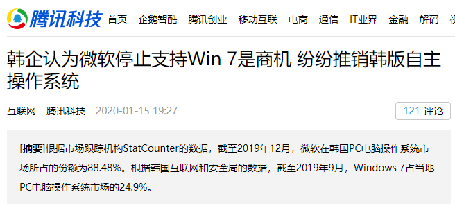 各国政府和商业公司纷纷就此提出应对措施,中国的近邻韩国也不例外。截至 2019 年 9 月,Windows 7 占当地 PC 操作系统市场的24.9%。