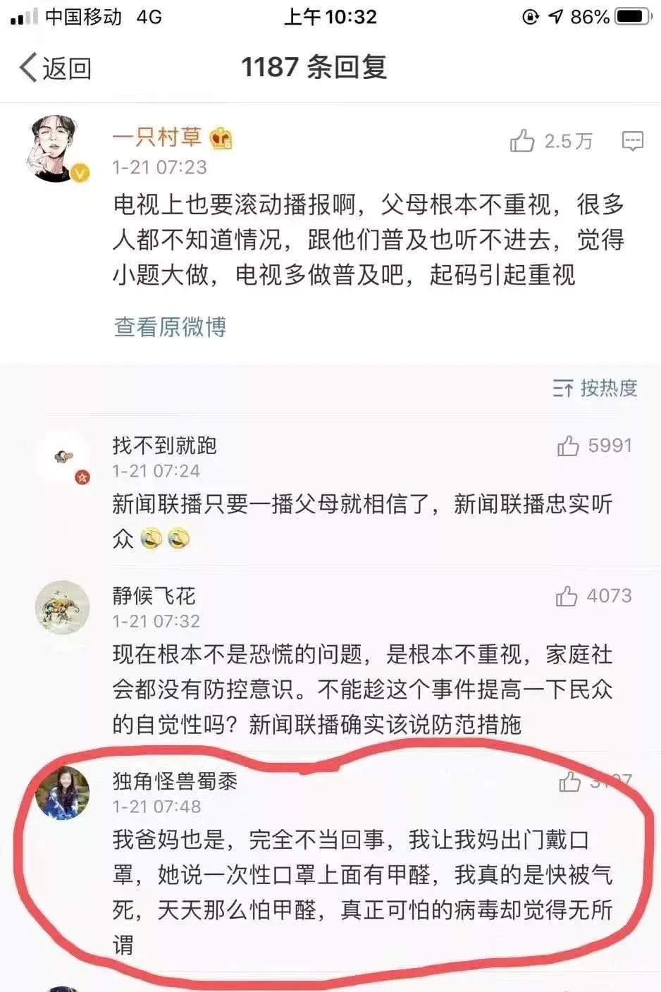 而在网络上,很多年轻人发现,此时路上戴口罩的人,基本都是平时天不怕地不怕的年轻人。不戴口罩的人,基本都是平时各种养生、转发各种谣言、这也怕那也怕的中老年人。