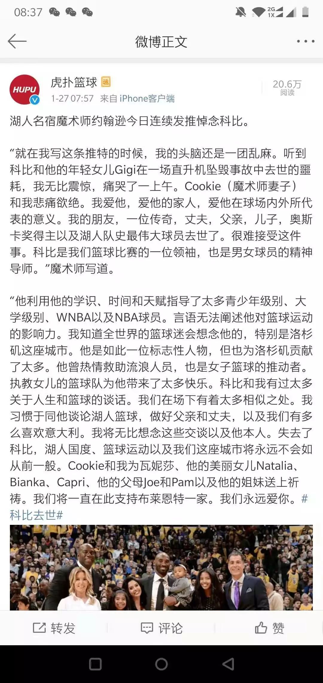 魔术师约翰逊悼念科比