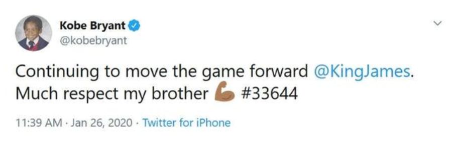甚至他生前最后一条动态,都是鼓励詹姆斯。