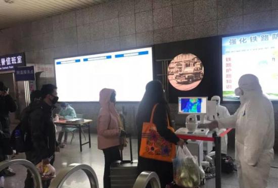 (上海火车站对所有到达旅客进行体温测量)