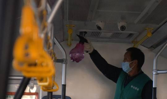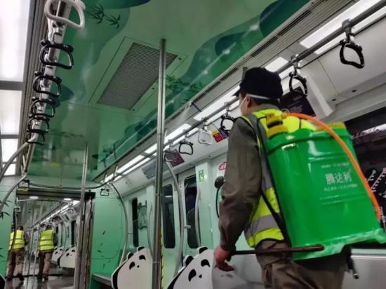 (成都地铁对车厢进行消毒)