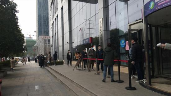 (长沙芯城科技园复工首日排队体温测量)