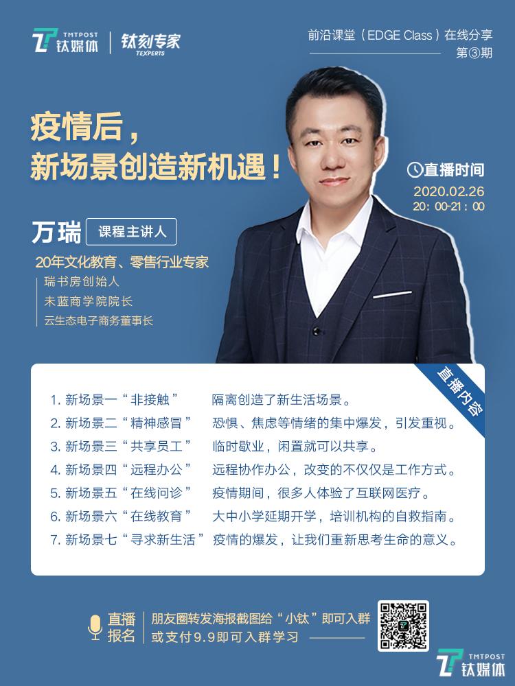本期,前沿课堂邀请了拥有20年文化教育、零售行业专家万瑞,跟我们分享疫情之下,产业“场景”重构的思考。