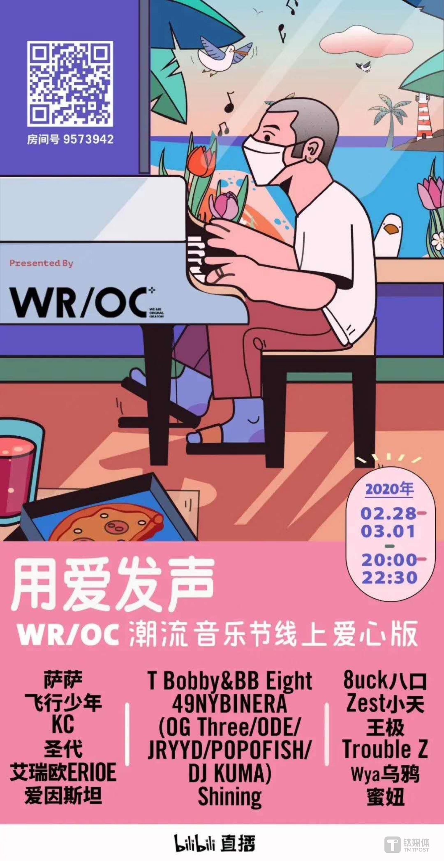 成立于2018年的WR/OC全称 We Are Original Creators,是一个致力于打造中国最具原创力和品质的潮流音乐厂牌。近日疫情期间,被打散了原本巡演计划的WR/OR也早在2月9日便与各大平台沟通做直播,并且在2月14日开始成功举办了“妈妈爸爸生活节”。