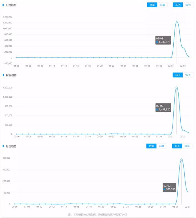 ▲ 回形针PaperClip2月2日,视频发布当日抖音、微博、B站的粉丝增量。图源:卡思数据