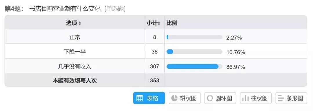 1月30日,中小书店联盟“书萌”向全国书店发起了“疫情当前书店现状调查”。这份报告显示超过99%的实体书店没有正常收入,参与调查的1021家书店里,90%以上的书店都无法正常营业。而作为典型的线下生意,37%左右的书店老板说现金流只能支持1个月,42%的老板则表示能够支撑3个月。