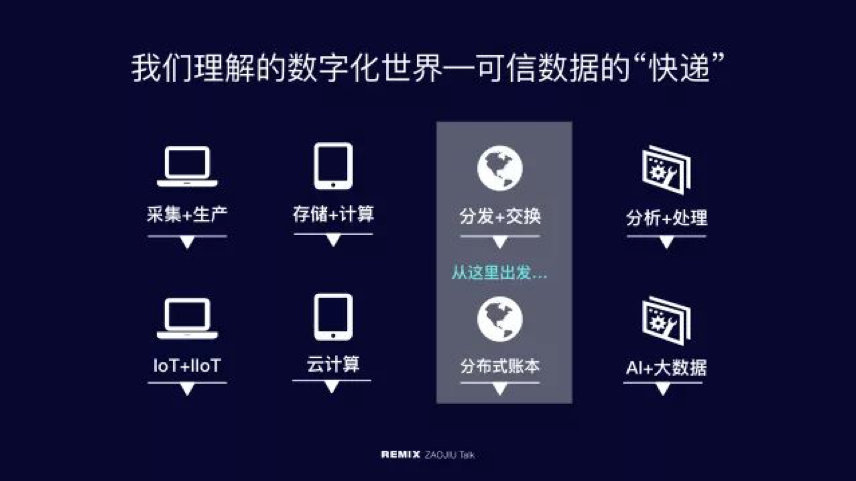 第三个是我们今天重点分享的,叫做数据分发和交换。我们认为以分布式账本为代表的新技术,就是下一代互联网重要的核心基础设施,它主要的定位点就是下一个时代数据交换的协议站(或者叫协议层)。