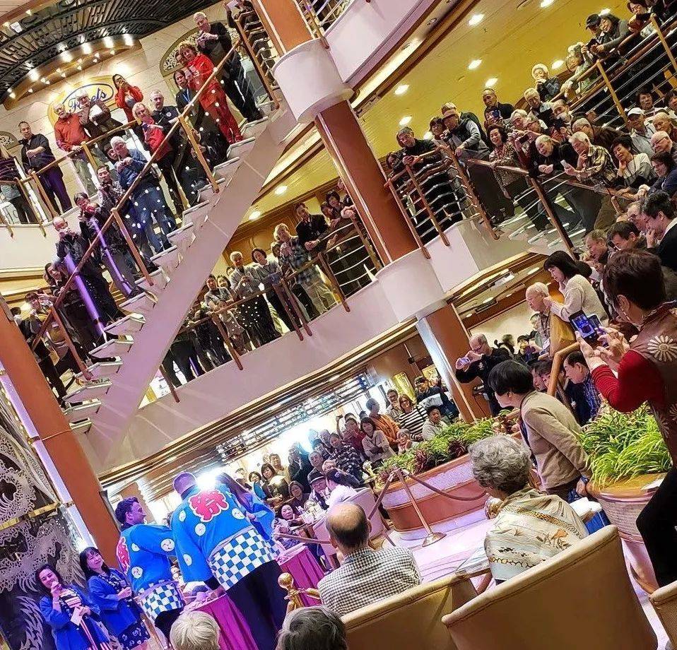 “这个活动叫‘镜割’。”伊藤很熟悉,它是在日本延续了300年的祈福活动——邮轮对安全和吉祥有狂热追求——在泰坦尼克号海难发生后,他们把逃生舱调整到和人数1:1配比,钻石公主号还在露天泳池放了尊佛像。