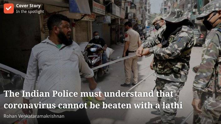印度媒体报道,警察用警棍驱赶没戴口罩的市民