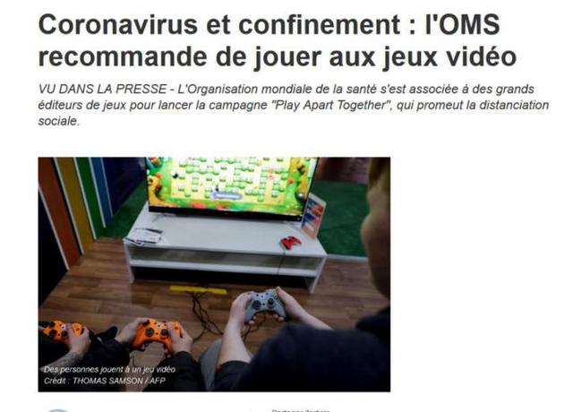Rey还告诉锌刻度,如今在法国《使命召唤》《英雄联盟》《魔兽世界》成为最火爆的三款游戏,一些网络桌游和线上聚会平台也用户量暴增。此外,法国媒体都还发出相关的劝说文章:《新冠病毒和关禁闭:联合国推荐大家玩电玩》《在家可以做的15件事》……让国民安心呆在家中。