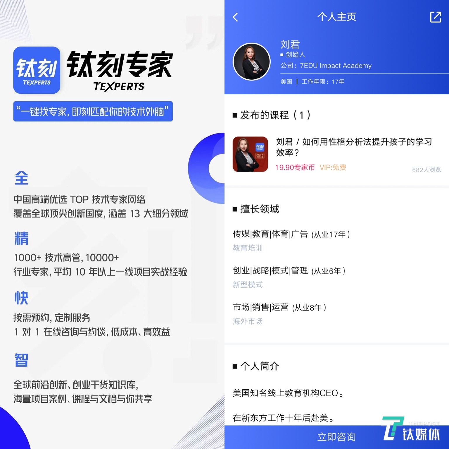 刘君现已入驻钛刻专家App,用户可以通钛刻专家App与刘君进行线上一对一交流咨询。