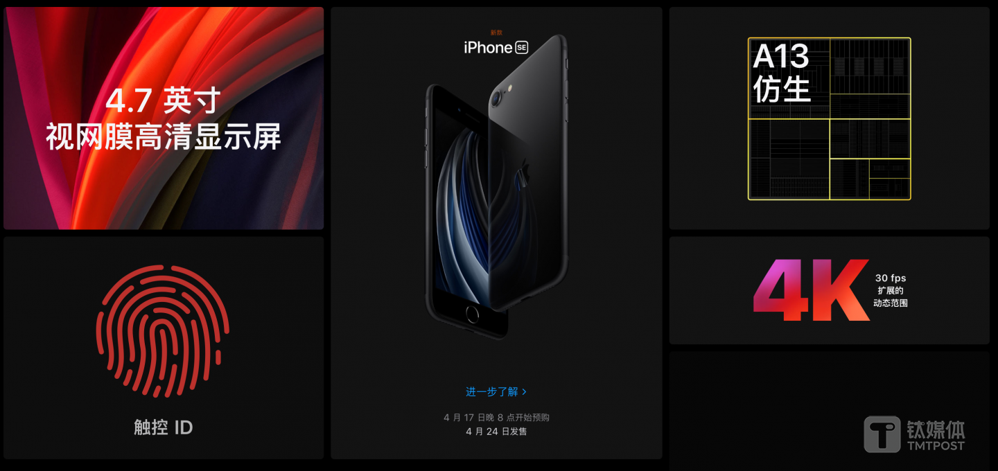 可见,苹果的目标非常清晰,新款iPhone SE很显然不是一个面向所有果粉的产品,它定位在于老用户升级,如果你是个苹果老机型用户,那么将是最佳选择,只需要花最少的钱,就能体验到最新的iOS以及A13。