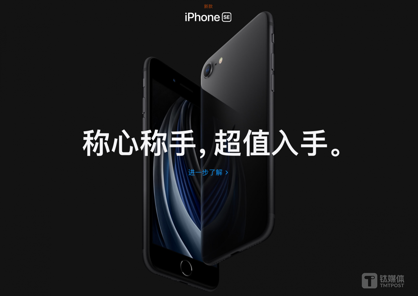 “称心称手,超值入手”。没有一点点防备,苹果跳过了发布会环节,悄悄在官网上更新了 iPhone SE,并附上了这样的宣传语。