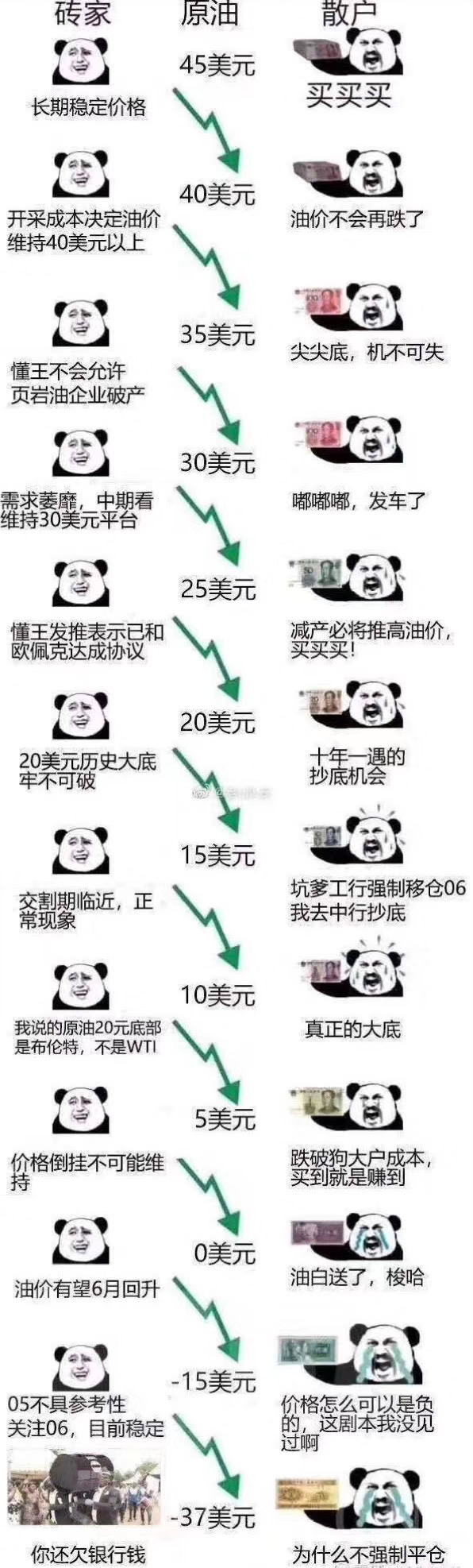 在投资者的角度,在非理性非专业的情况下,贸然入局,这次所谓的“抄底”,就是因为很多人在不懂原油的情况下,甚至基本名词都不懂,就觉得跌了很多,应该抄底了,于是冲进原油市场,一路踩踏。
