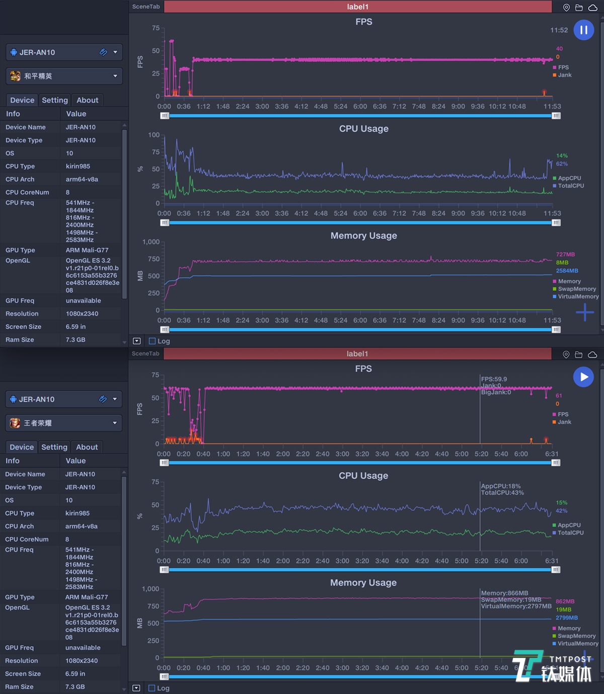 笔者选取了常见的游戏,王者荣耀和和平精英作为测试:其中王者荣耀在特效全开的情况下,能够全程保持60帧每秒没有任何问题。至于和平精英,在开启全部特效的时候,也能全程维持40帧每秒,没有任何波动。