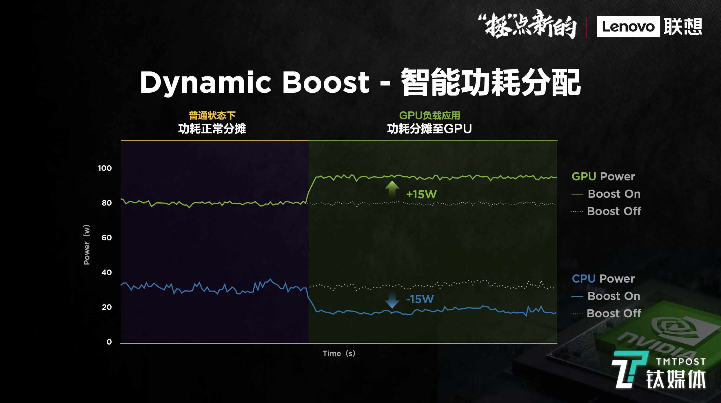 此次,拯救者笔记本支持Dynamic Boost智能功耗分配,产品可以根据用户的需求,提供更强图形性能且无需用户手动干预。