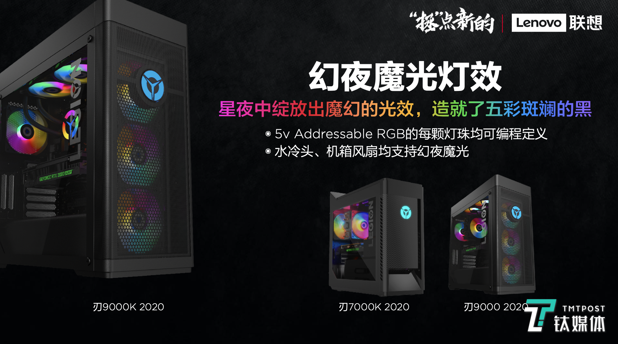 本次拯救者新品发布会除了发布了最新的笔记本产品,联想带来了四款全新的台机产品,包括拯救者刃7000K 2020、拯救者刃9000 2020、拯救者刃9000K 2020和经典外观的Y7000 2020。