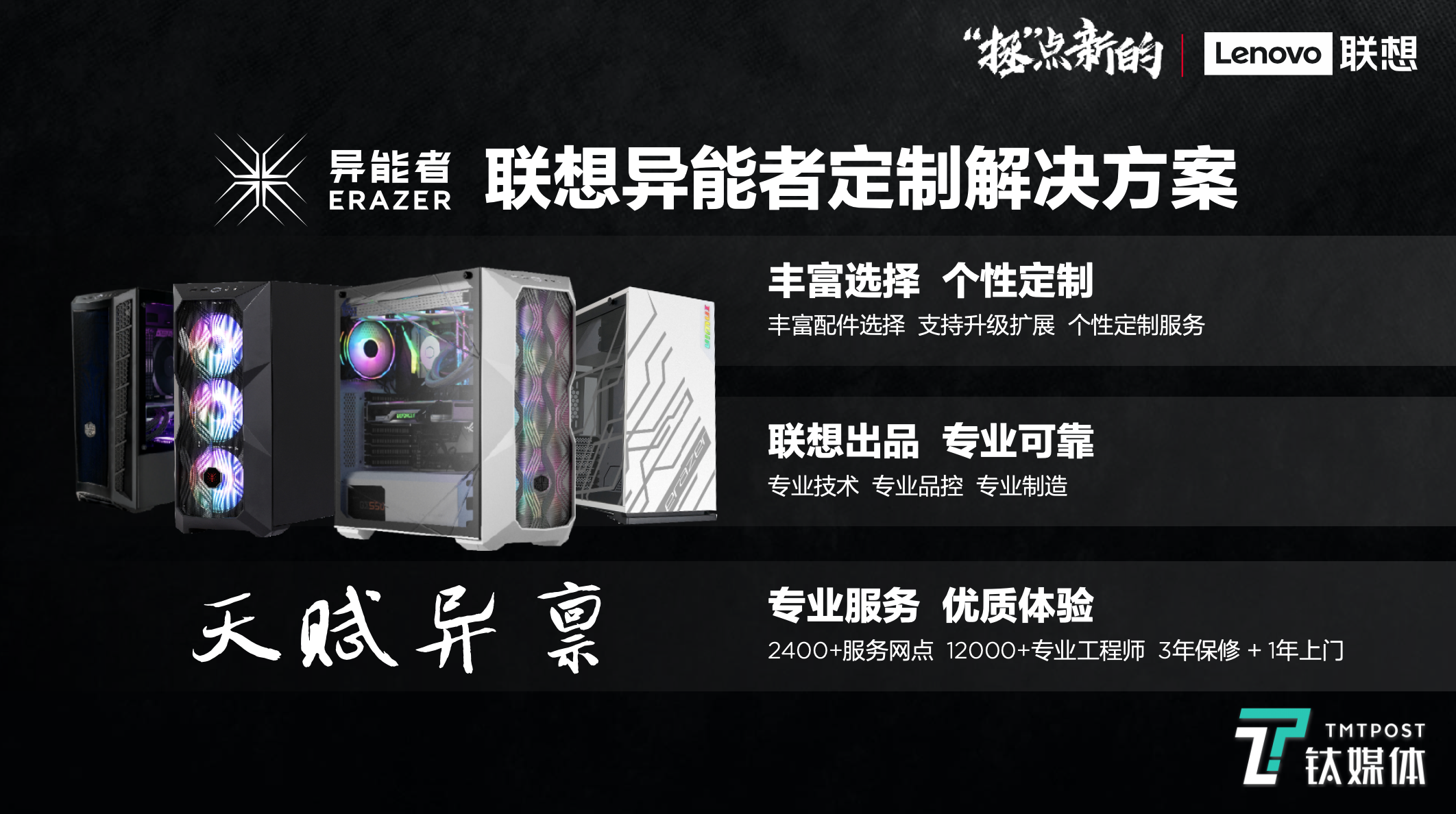 同时,全新的联想异能者整体游戏解决方案也在本次发布会中进行亮相,用户可以根据自己的需求DIY主机,并还可以拥有联想其他服务支持。