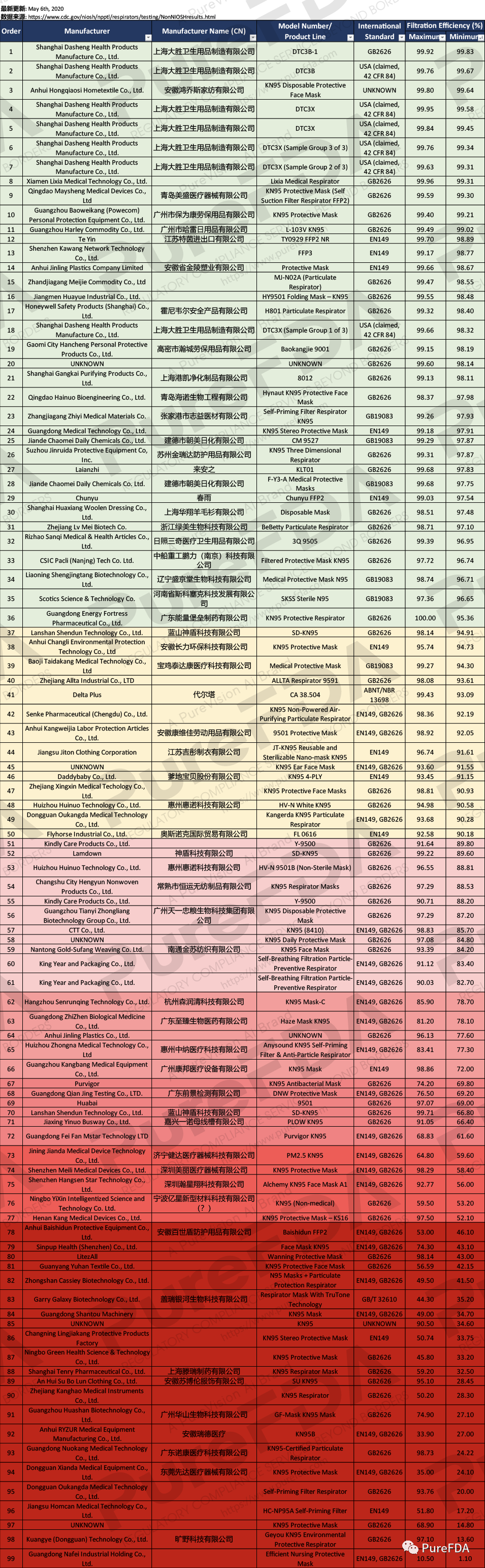 在美国购买者的压力下,CDC紧急调整名单,中国企业若想再次入围,只有检验报告远远不够,必须满足新增条件。例如,制造厂商有多个或一个Niosh认证;通过中国国家药监局的医用器械类认证;四月初上白名单的那批厂商,在45天内提交NIOSH的检测报告,且符合标准。