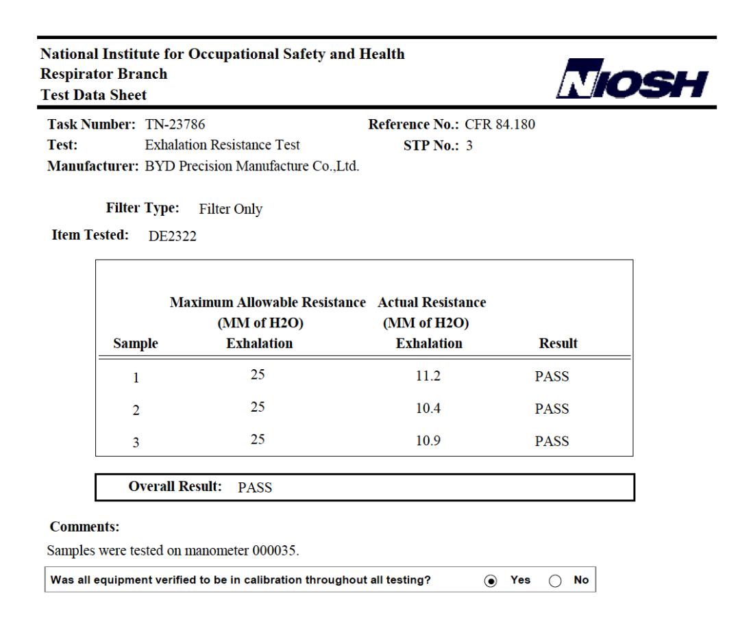 △比亚迪N95样品的检测结果都已通过。