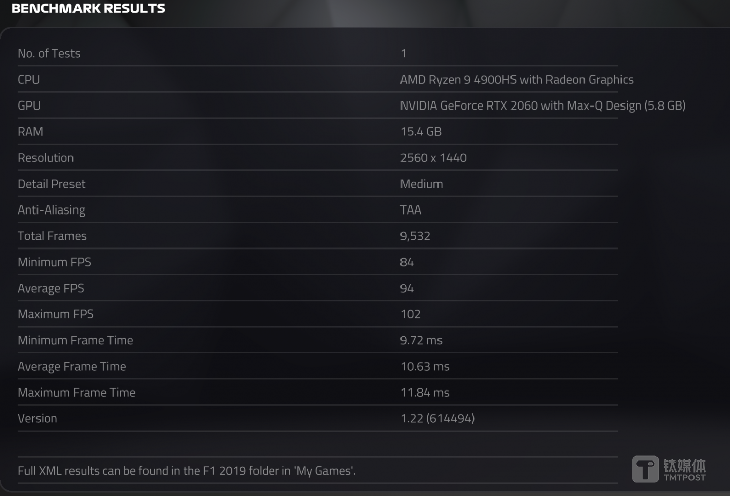 《F1 2019》测试结果