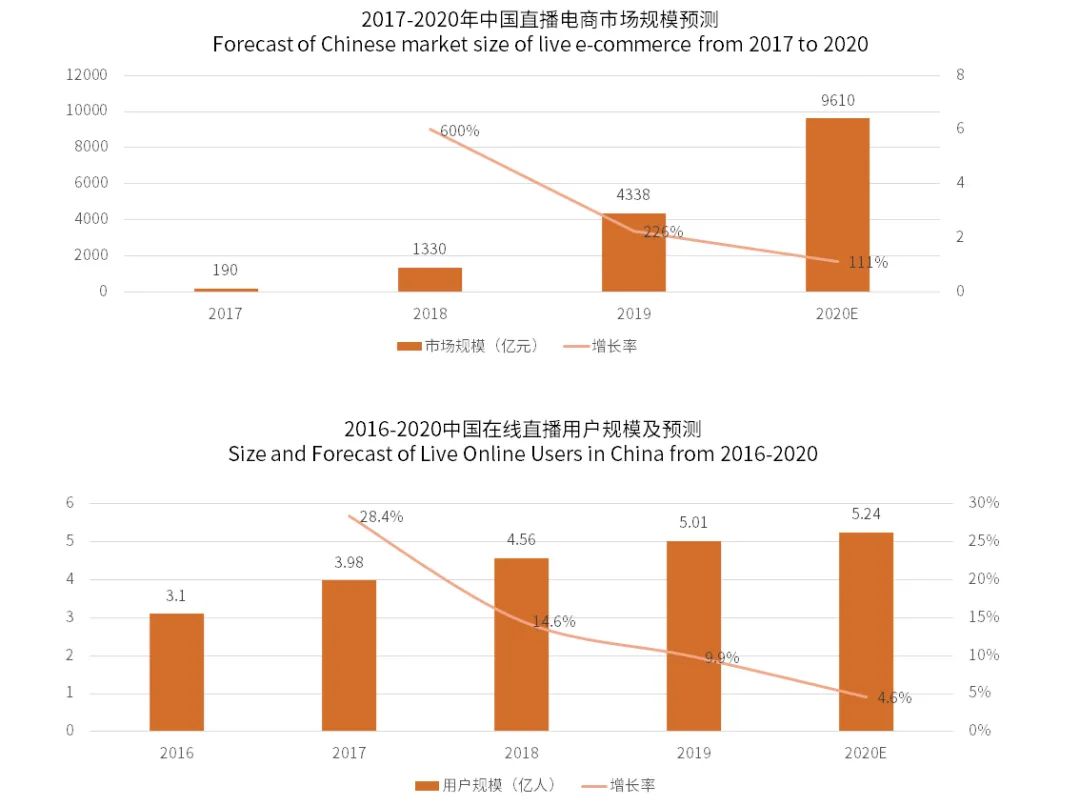 2020年是直播电商大势之年,据艾媒咨询《2020-2021年中国直播电商行业运行大数据分析及趋势研究报告》显示,2019年,中国直播电商行业的总规模达到4338亿元,预计到2020年规模将翻一番,到2020年中国在线直播用户规模将达到5.24亿人。