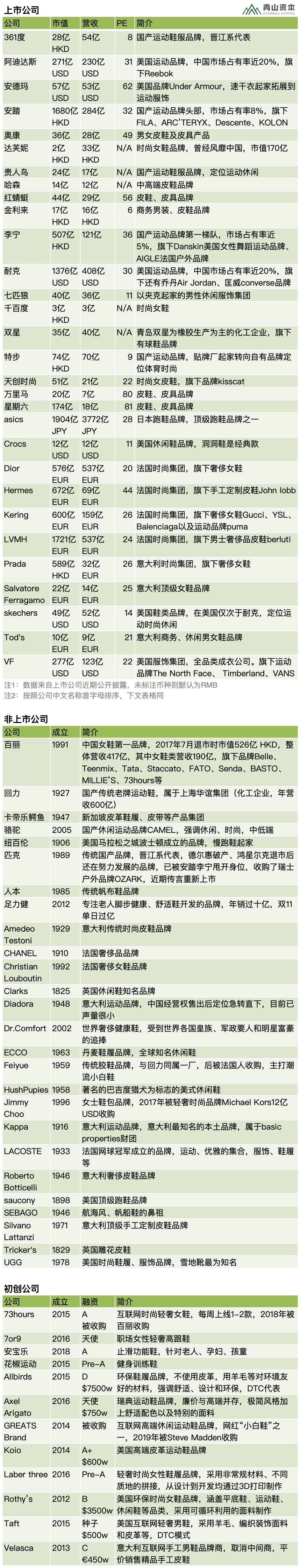 (以下是鞋赛道里的不同类型企业图谱,包括有公开信息的初创企业)