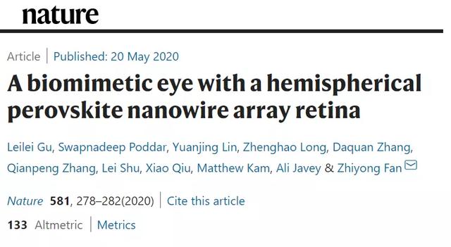 而在本周《Nature》发表的一篇论文中,由香港科技大学范智勇教授带领的团队,成功开发了一种可以媲美人类视网膜的人工视网膜,由该视网膜组成的仿生眼在某些情况下甚至比人眼看的更清楚。