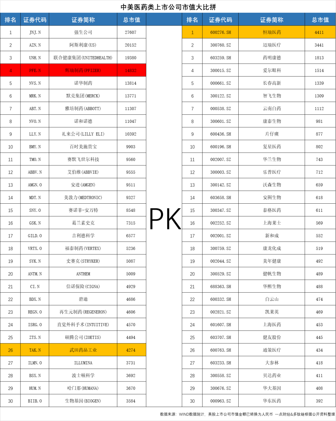以美国的抗肿瘤类上市公司阿斯利康、辉瑞制药和诺华制药来看。根据WIND数据5月21日的数据显示,这三家公司总市值分别为20152亿人民币、14832亿人民币、13814亿人民币,远远超出恒瑞的4411亿人民币。