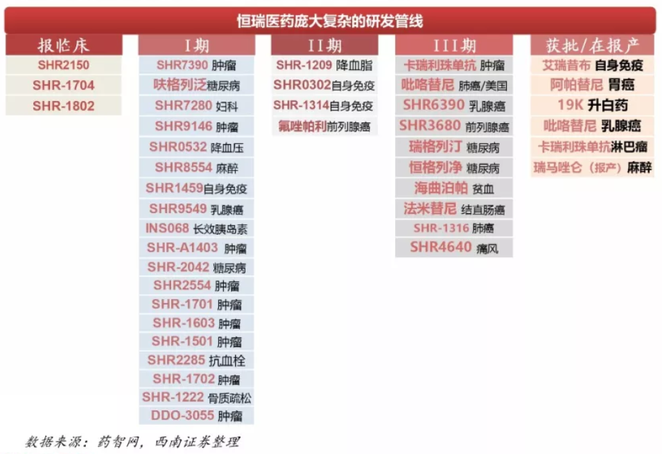 比完业绩和市值之后,再看看恒瑞医药与辉瑞制药的产品管线,毕竟这是药企未来全球市场竞争的最核心。