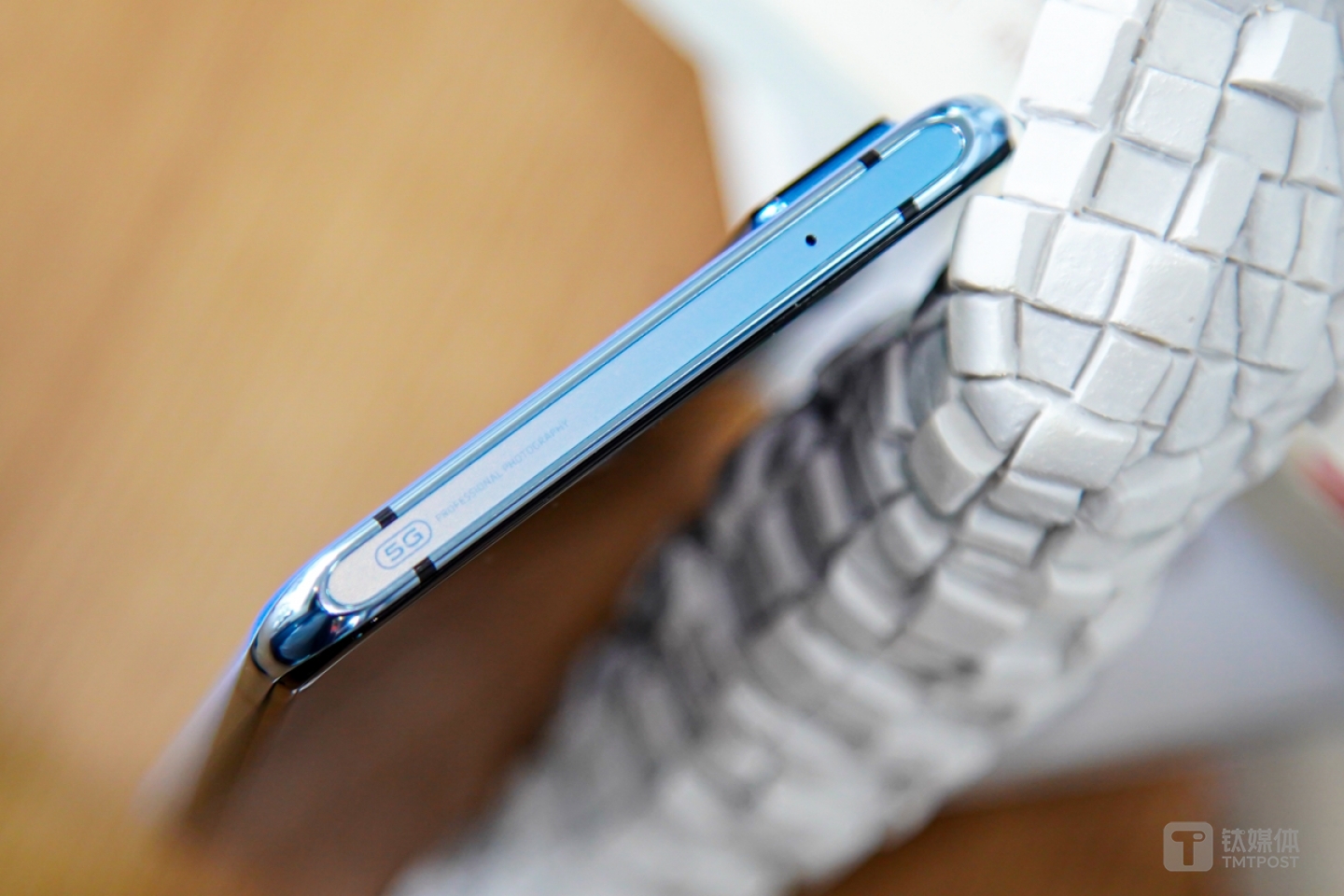 与此同时,choker也被运用于X50系列机身顶部的设计之中。X50机身顶部的项圈设计包含了与CMF配套的色彩,简洁的线条,变化的光感纹理,以及X系列科技属性的刻印:5G和professional photography。这个小设计不仅是对设计把控的体现,还从视觉上缩减了顶部的单调感和厚度。